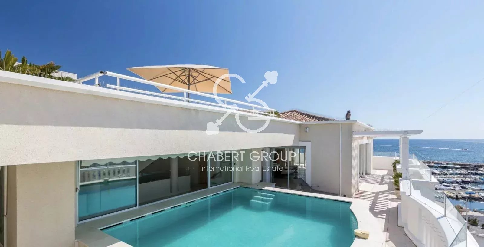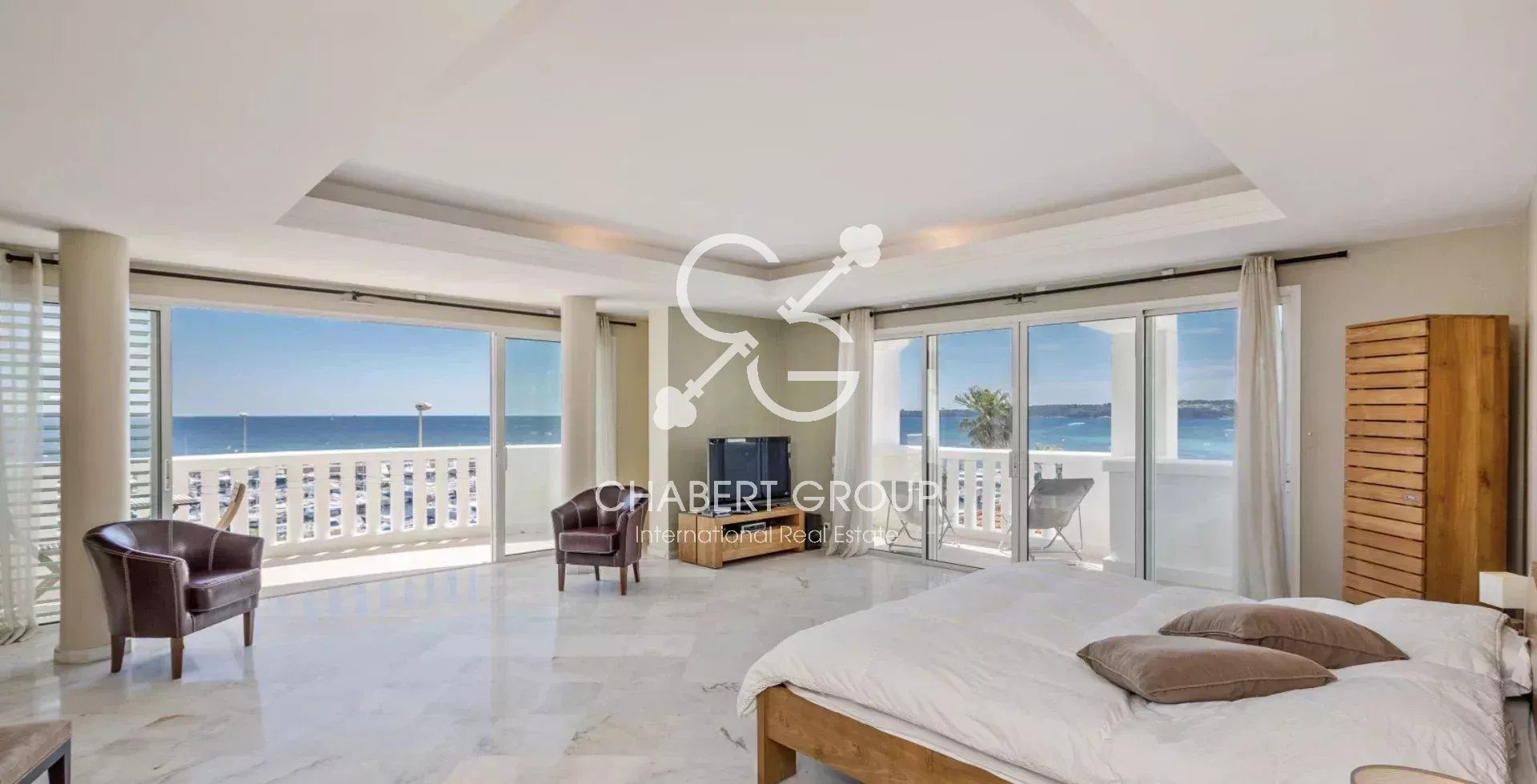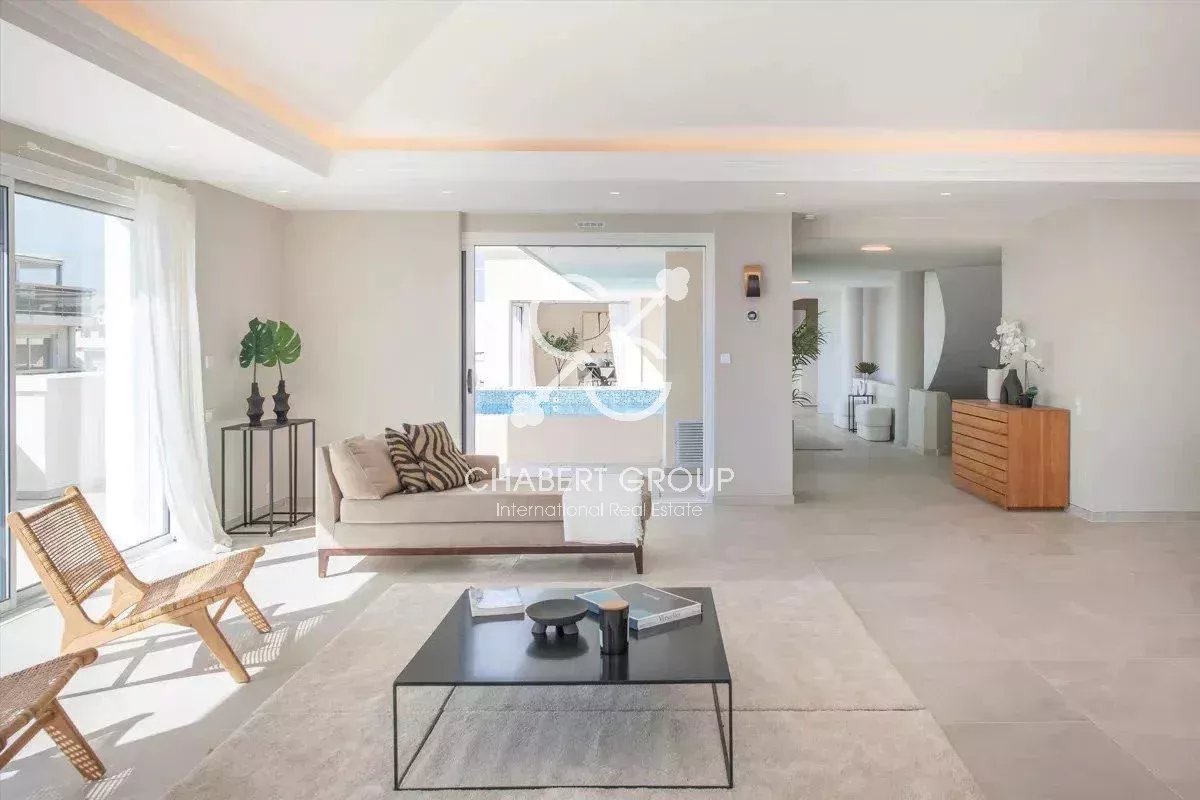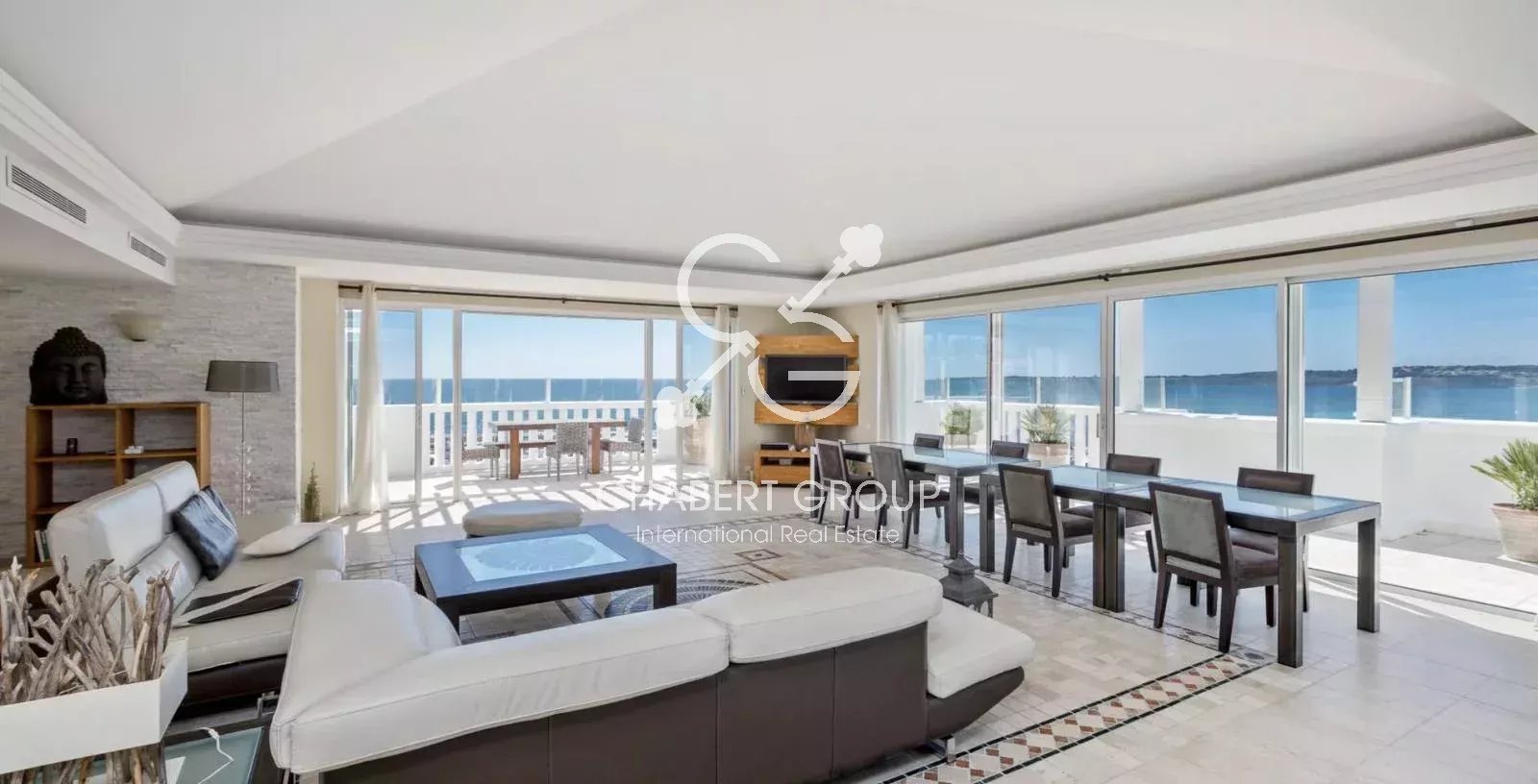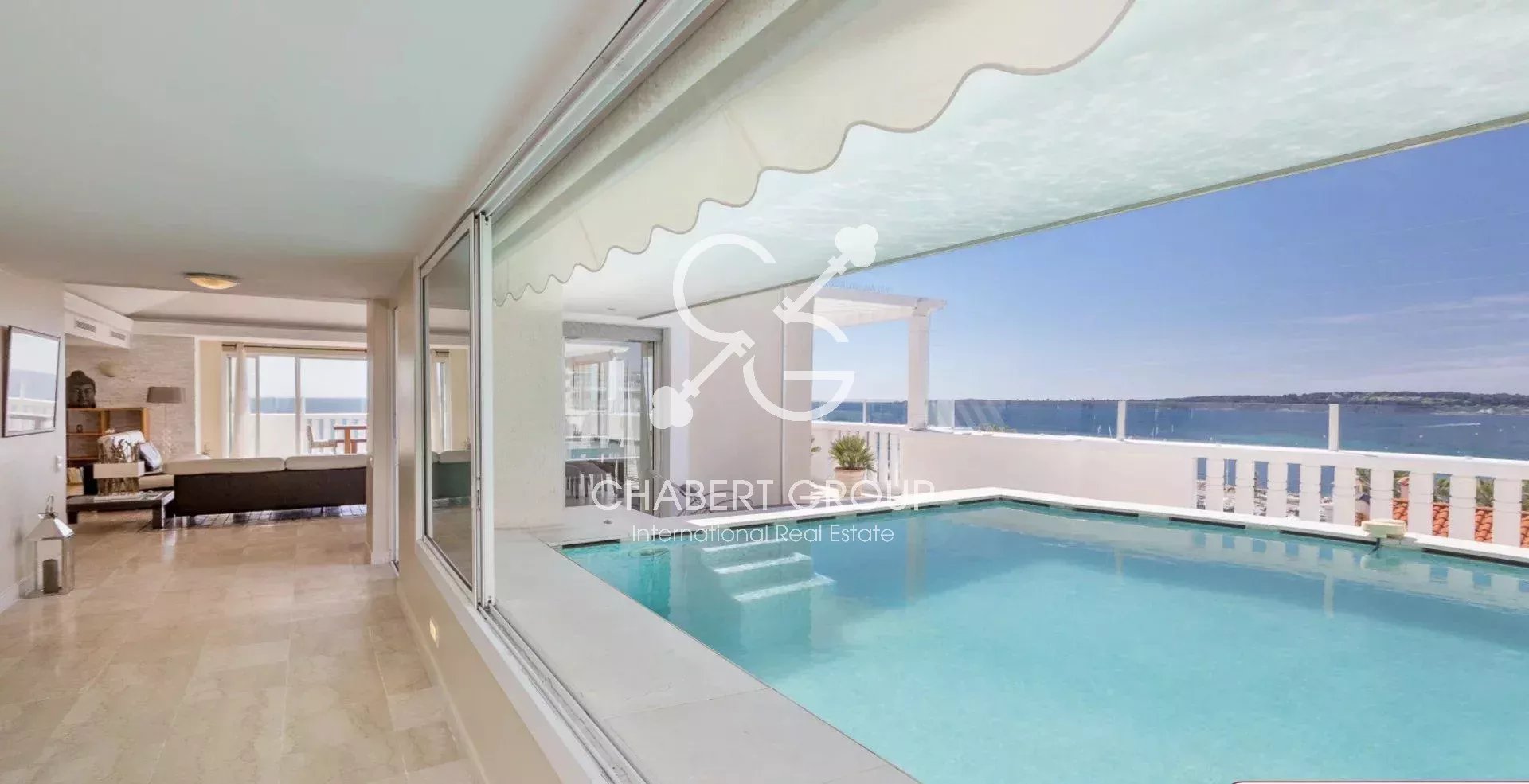 Discover this sumptuous triplex penthouse offering 512 m² of living space and 240 m² of terraces, with panoramic sea views stretching from Cap d'Antibes to the Lérins islands.