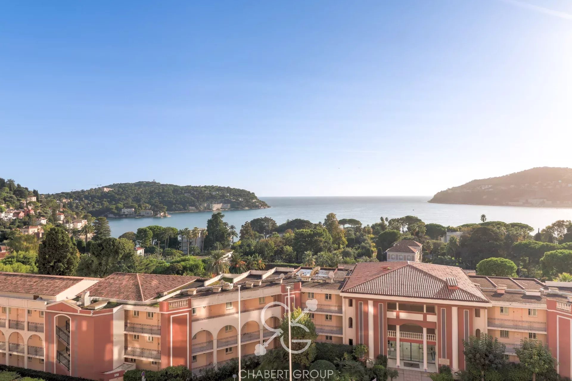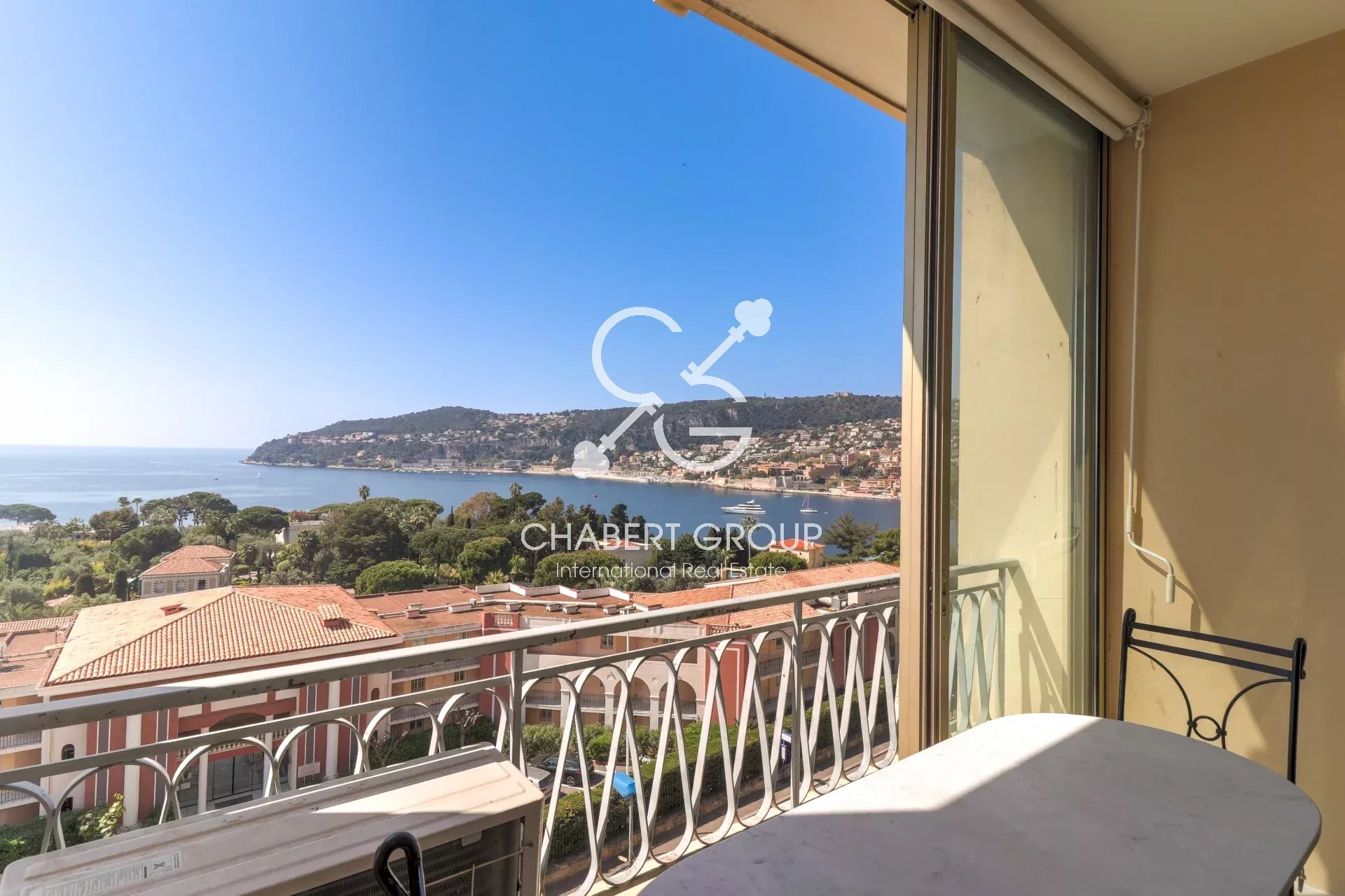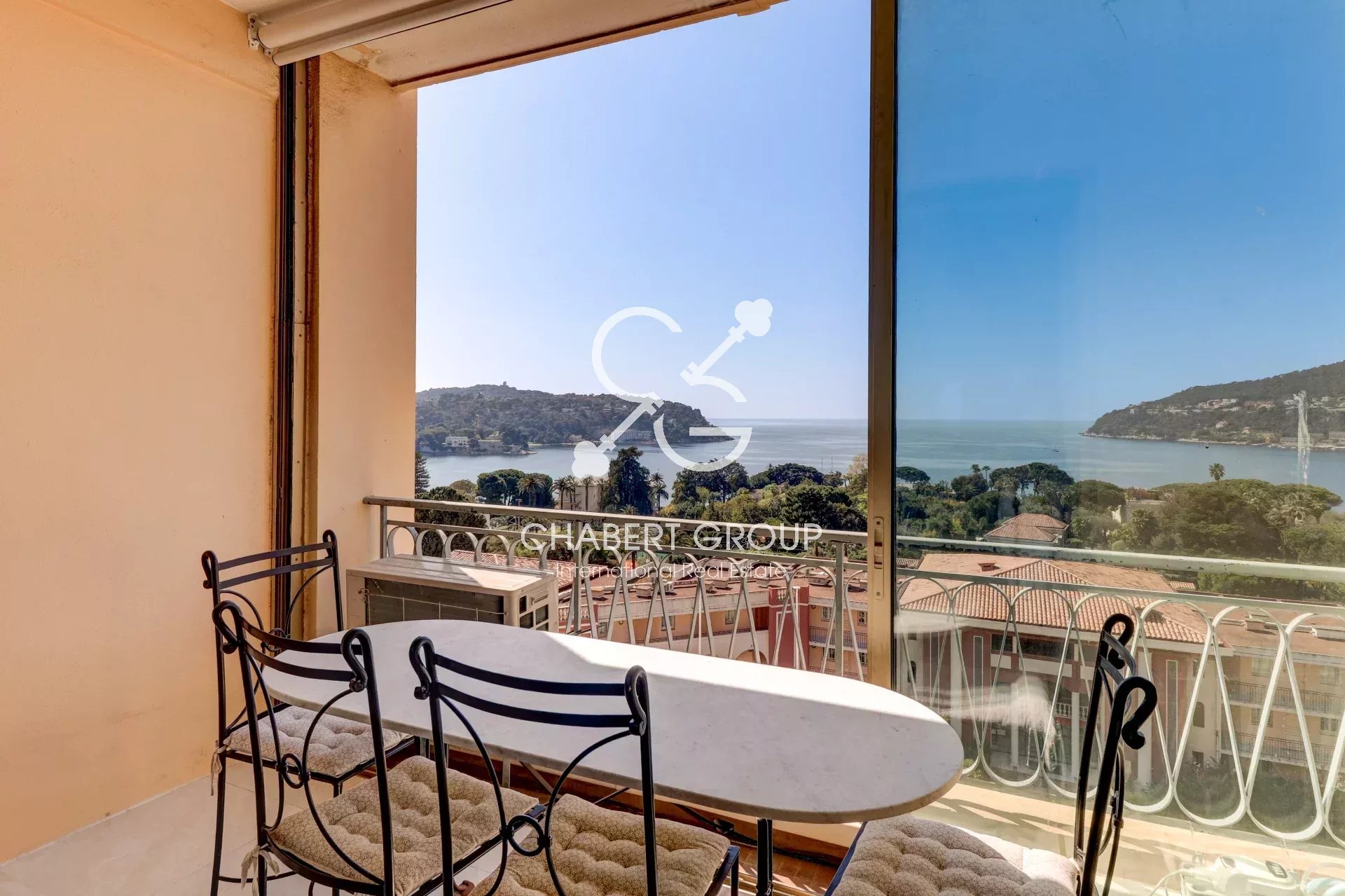 L'appartement, exposé plein sud, se compose d'une entrée, d'un grand séjour, d'une cuisine séparée aménagée et équipée, d'une chambre, d'une salle d'eau, d'un WC indépendant, d'une spacieuse terrasse de 17m2 et d'une loggia donnant sur une magnifique vue dégagée sur la rade de Villefranche-sur-Mer et de Saint-Jean-Cap-Ferrat.